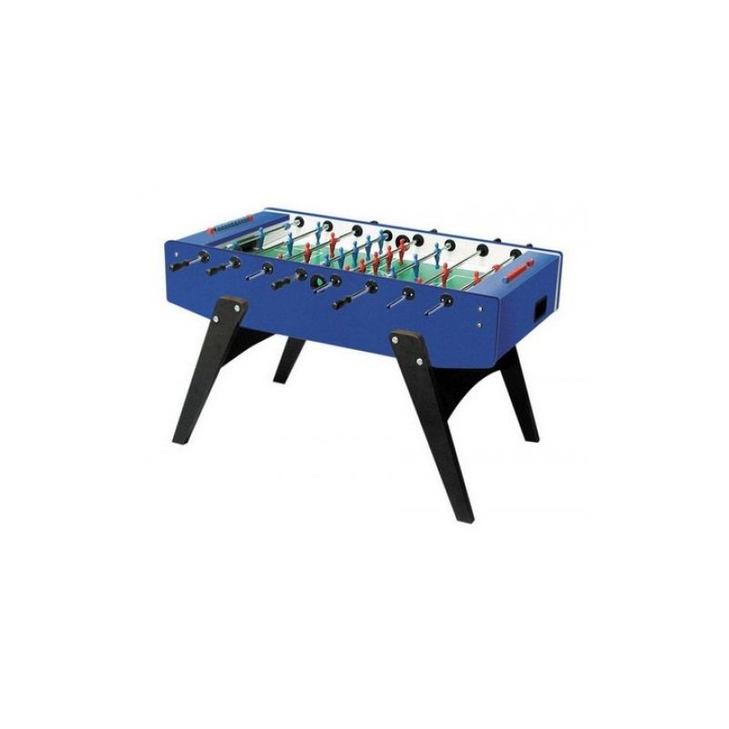 Dit is de Garlando G-2000 Blauw Voetbaltafel. Het betreft een hoge kwaliteit tafel voor recreatief gebruik. Het kabinet is uitgevoerd in 25 mm. dikke fiberboard met schuine poten. Het speelveld is van afwasbaar laminaat en de stangen zijn 16 mm. dik en lopen door nylon geleiders en kogel lagers. Deze stangen hebben gegoten poppen in de kleuren rood en blauw. Deze tafel wordt geleverd incl. ballen.